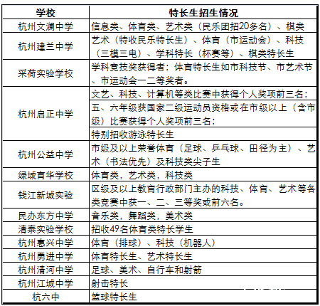 杭州文瀾、建蘭、采荷、公益等特長(zhǎng)生情況表