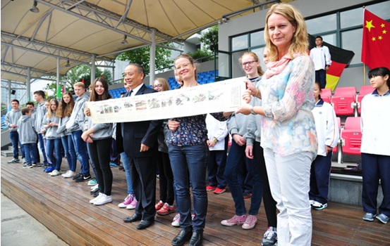 在校期間,托梅恩學(xué)校來訪師生參觀了學(xué)校的教育教學(xué)設(shè)施, 并到結(jié)對學(xué)生的班級聽課學(xué)習(xí)、交流。他們還與我校師生一同參加了第53屆田徑運(yùn)動會入場式和各項(xiàng)比賽。德國師生游覽杭州名勝,了解杭州的歷史文化,并入住我校結(jié)對學(xué)生家中體驗(yàn)中國學(xué)生家庭生活。