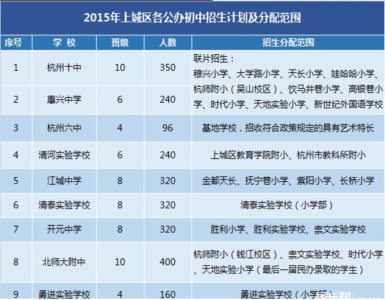 2015年杭州上城區(qū)公辦初中招生計(jì)劃及分配范圍