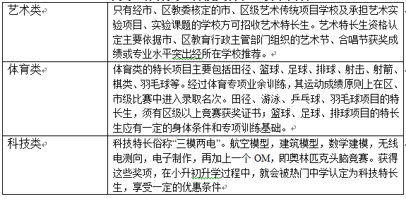 藝術(shù)類、體育類、科技類特長生要求內(nèi)容