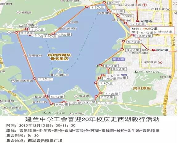 《杭州超限教育中心楊曉2015年12月28日訊》杭城近來(lái)喜事連連,G20峰會(huì)落戶(hù)西子,我們建蘭中學(xué)建校整20周年!這對(duì)全體建蘭人來(lái)講真是一件值得慶祝的事。這不,為迎接雙20的到來(lái),期待我們的校慶大典即將舉行,我校工會(huì)特意組織了本次走西湖毅行活動(dòng)!