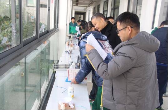 《杭州超限教育中心李林2016年1月19日訊》 杭州東南中學(xué)第二屆科技節(jié)以“科技改變生活,東南成就夢(mèng)想”為主題,不僅有水火箭比賽、開放實(shí)驗(yàn)室活動(dòng),還有“未來(lái)之星”展示活動(dòng)。水火箭比賽中,同學(xué)們發(fā)揮聰明才智設(shè)計(jì)制作的水火箭最終按照飛行距離決出了一、二、三等獎(jiǎng)。在開放實(shí)驗(yàn)活動(dòng)中,每位同學(xué)完成了8個(gè)以上不同的實(shí)驗(yàn),既增強(qiáng)了同學(xué)們學(xué)習(xí)科學(xué)知識(shí)的興趣,也鍛煉了動(dòng)手能力。在“未來(lái)之星”展示活動(dòng)中,同學(xué)們用非凡的創(chuàng)造力和強(qiáng)大的動(dòng)手能力,展示了一件件讓人眼前一亮的小發(fā)明、小制作和趣味生動(dòng)的小實(shí)驗(yàn)。