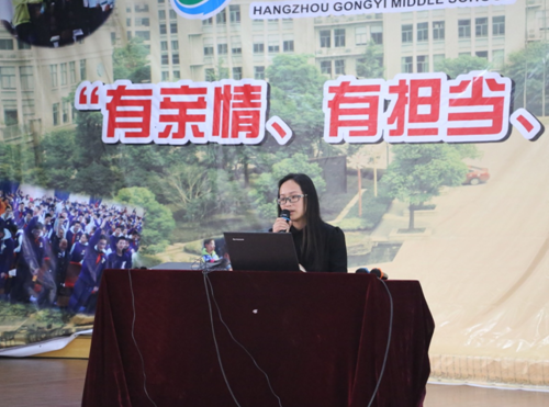 會(huì)上,杭州市陽(yáng)光男教師,公益中學(xué)初一(8)班班主任王曉巍老師以《教師人格魅力淺談》切入話(huà)