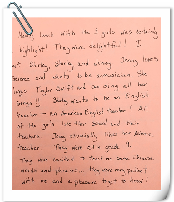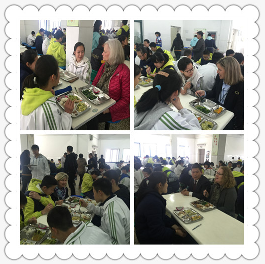 《杭州超限教育中心李林2016年3月15日訊》 2016年3月14日午餐時間,公益中學(xué)的學(xué)生餐桌上迎來了五位美國校長。餐桌上笑聲不斷,同學(xué)們一邊享受美食一邊用英語和校長們談天說地,從自我介紹到興趣愛好,從人文地理到學(xué)科學(xué)習(xí),似乎有聊不完的話題。同學(xué)們絲毫沒有顯露膽怯和不自信,這給美國友人們留下了積極、陽光的印象。幾位美國校長在交流會上不停地稱贊公益人流暢的口語和充滿正能量的個性,并在結(jié)束時紛紛要求和同學(xué)們合影留念。餐桌上多了公益孩子們燦爛的笑容,這也是幾位遠(yuǎn)道而來的貴客難忘的回憶。