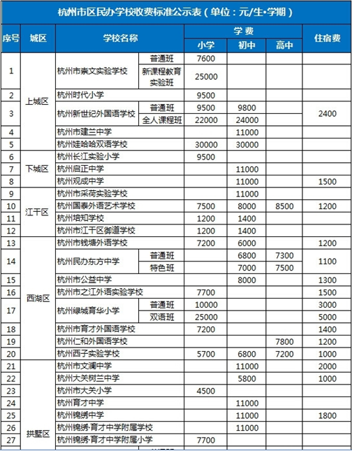 《杭州超限教育中心李林2016年04月06日訊》忙完每年的小升初前期招生工作,另一個(gè)方面家長(zhǎng)較為關(guān)心是事情無(wú)非就是各個(gè)學(xué)校的收費(fèi)情況,現(xiàn)整理相關(guān)杭州各個(gè)民辦學(xué)校學(xué)費(fèi)情況如下:
