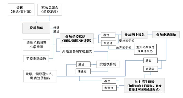 坊間版:在正式報(bào)名之前,學(xué)校會(huì)先行邀請(qǐng)學(xué)生進(jìn)行面談,后按官方規(guī)定流程走。坊間流行的招生流程概括如下: