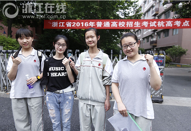 《杭州超限教育中心李林2016年06月07日訊》今年,杭州高級(jí)中學(xué)考點(diǎn)設(shè)置了36個(gè)正式考場(chǎng),2個(gè)備用考場(chǎng)。該考點(diǎn)除了本校的考生,還有來自艮山中學(xué)等其他考生點(diǎn)的考生。下午3點(diǎn)不到,來自艮山中學(xué)的小陳便和小伙伴結(jié)伴來踩點(diǎn)。四個(gè)小姑娘有說有笑,相互擊掌加油,顯得很輕松。小陳是藝術(shù)生,已經(jīng)通過了傳媒的播音主持專業(yè)考試。“之前經(jīng)歷了一些考試,把心態(tài)鍛煉地很好了,對(duì)于明天的考試不是特別緊張,更把高考當(dāng)成人生的一次經(jīng)歷!毙£愋χf。