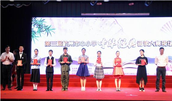 《杭州超限教育中心李林2016年06月08日訊》為進一步弘揚中華優(yōu)秀傳統(tǒng)文化,全方位、多形式、多渠道在全市中小學校推動中華優(yōu)秀傳統(tǒng)文化的宣傳、普及與實踐,杭州市教育局于4月至6月在全市范圍內(nèi)開展第三屆杭州市中小學中華經(jīng)典誦讀大賽。經(jīng)各區(qū)、縣(市)初評推薦,大賽共收到200余份入圍復賽作品,經(jīng)專家評委推選,選出小學個人組、集體組,中學個人組、集體組共40份作品參加現(xiàn)場決賽,最終決出一等獎16個,二等獎24個,評出優(yōu)秀指導老師20個。