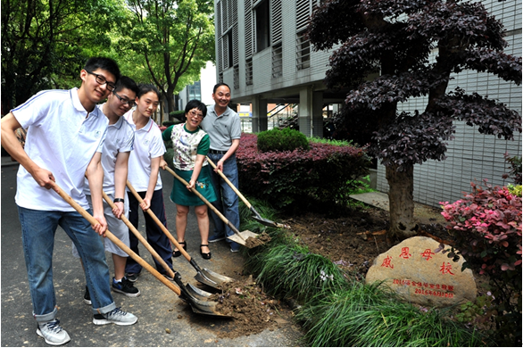 為答謝2016屆學(xué)子對母校的拳拳愛意,學(xué)校于6月10日上午在行政樓前舉行了植樹儀式。陳萍校長、馮定應(yīng)副校長、校辦主任朱高雄、教學(xué)處副主任黃曉博等學(xué)校領(lǐng)導(dǎo), 2016屆年級組長徐小芳,還有畢業(yè)生代表和家長代表們共同見證這一時(shí)刻。