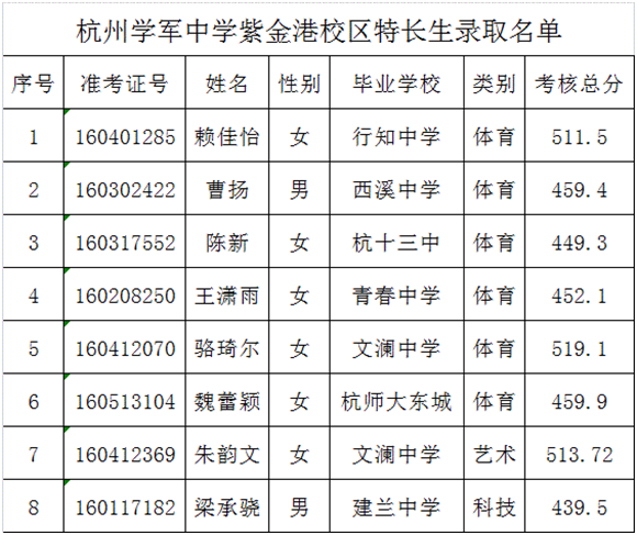 《杭州超限教育中心李林2016年06月30日訊》今日,學(xué)軍中學(xué)公布了2016年藝術(shù)生錄取名單,錄取特長(zhǎng)生人數(shù)37人,詳細(xì)名單如下。