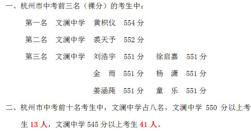 《杭州超限教育中心李林2016年07月07日訊》杭州市文瀾中學(xué)近日,發(fā)布2016年杭州中考成績(jī)榜單,文瀾中學(xué)今年中考取得了好成績(jī),詳細(xì)如下: