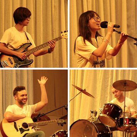 接下來就是大家喜聞樂見的開營表演。外教們首先上場,依次介紹了自己。他們有的說一口流利的中文,獲得了滿堂的掌聲;有的說到自己的背景與經(jīng)歷,引來一陣陣驚呼。他們唱的I’d Like to Teach the World to Sing讓同學們感受到了他們的熱情與活力。