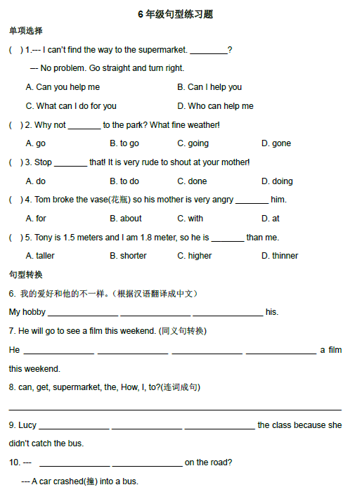 小學(xué)英語六年級句型復(fù)習(xí)