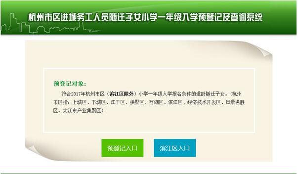 2、外地戶籍子女入讀公辦:預(yù)登記入口 備注:目前該登記入口針對城區(qū)為杭州主城區(qū)以及蕭山、余杭區(qū)預(yù)登記