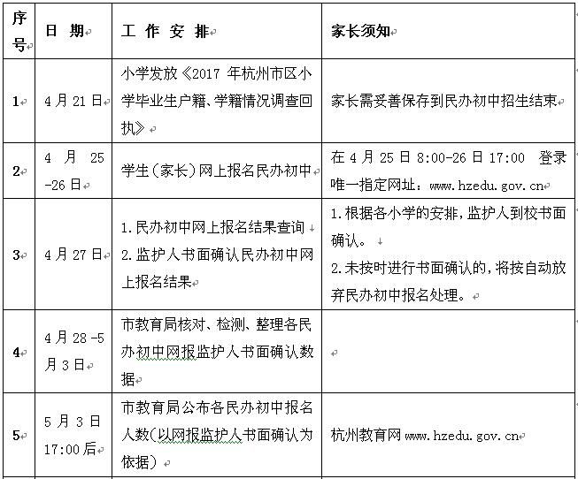 2017杭州市區(qū)民辦初中招生相關(guān)工作時(shí)間安排